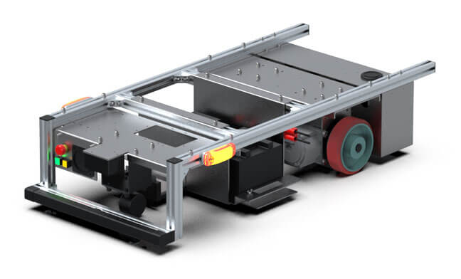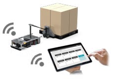 こちらはSHARPの、物流倉庫や製造工場で荷物を無人搬送するAGVです。