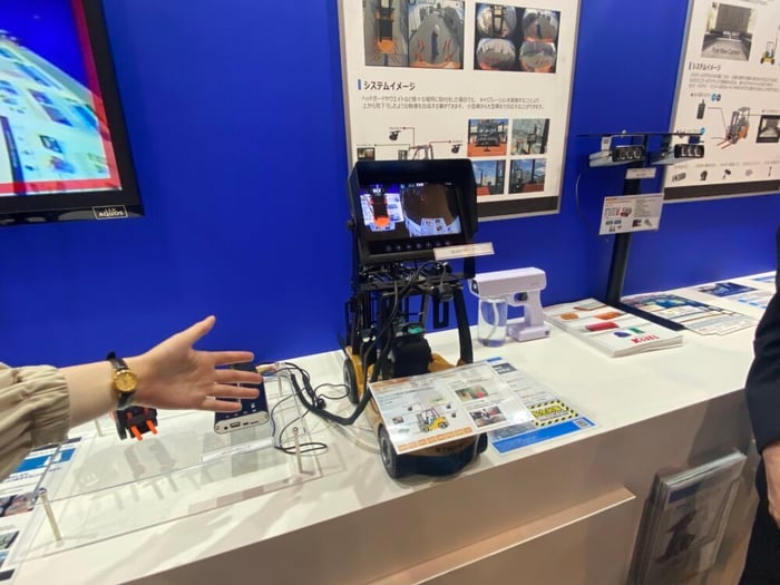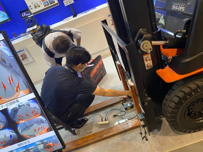 この3種類の製品をフォークリフトに実装し、展示してあります。