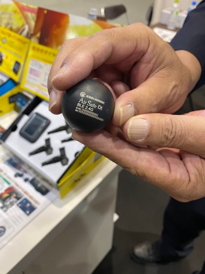 このボール、こんなに小さいのに、タイヤの空気圧を測定してくれる製品だそうです。