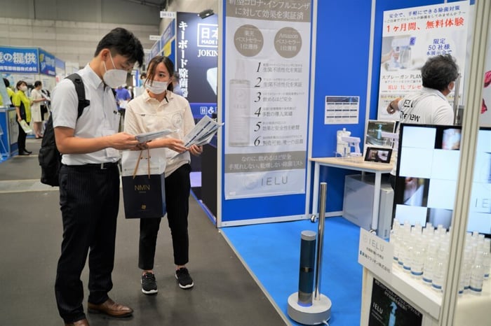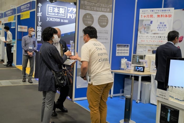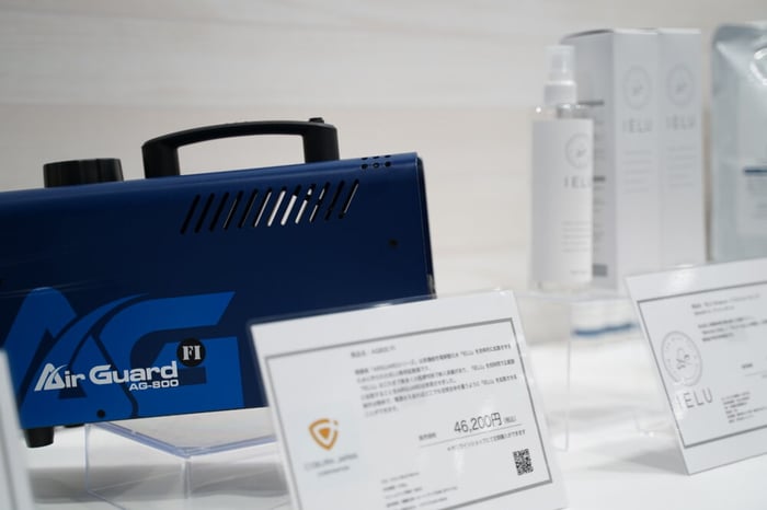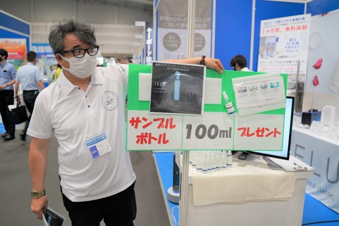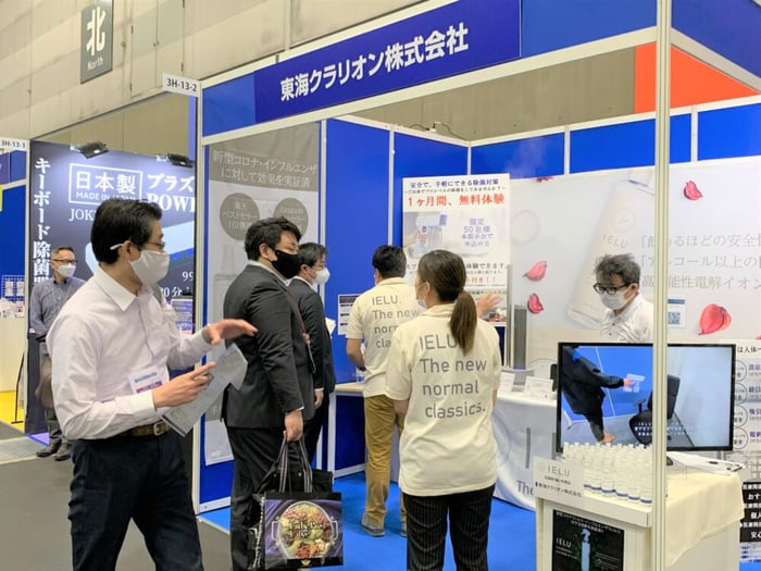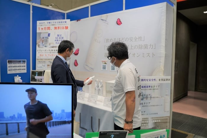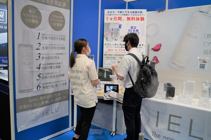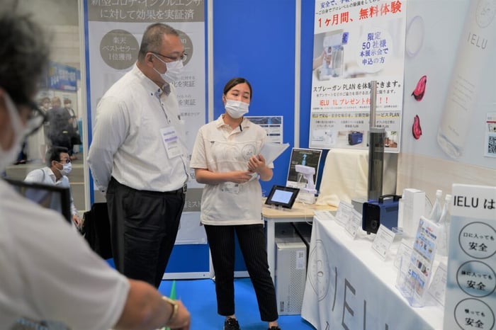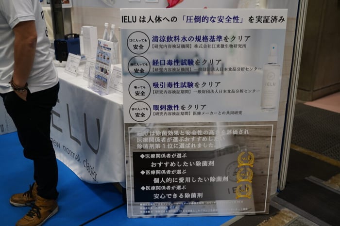 説明員の山崎さんによると、「お客様の除菌液に対する意識や知識が高まっている中でも、IELUはとてもいい反応をいただけている。」とのこと。