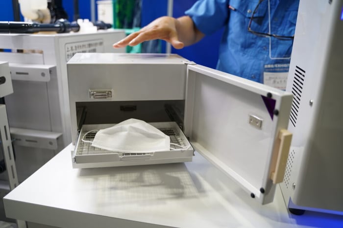 中にマスクを入れて、たった10秒で除菌が完了します。とってもスピィーディー!