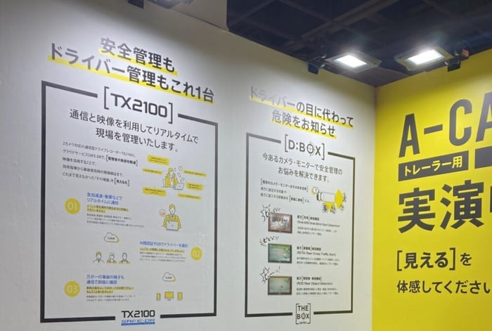さらに、D-BOXでのバック事故・巻き込み事故対策や、TX2100+SAFE-DRを活用した安全管理およびドライバー管理システムもご案内いたしました。