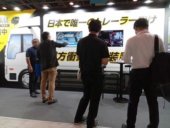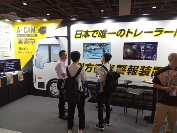 ブースの壁をトラックに見立て、前方のミラー部分にA-CAMを設置し、検知の様子やモニターでの見え方を実際に体験していただきました。