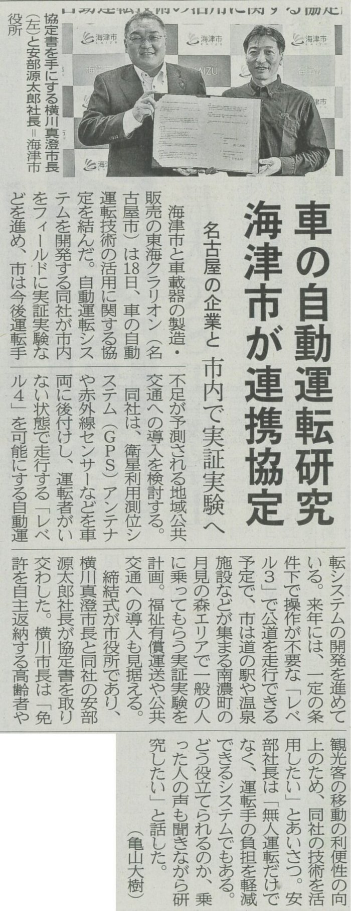 岐阜県海津市と自動運転技術の活用に関する協定を結びました