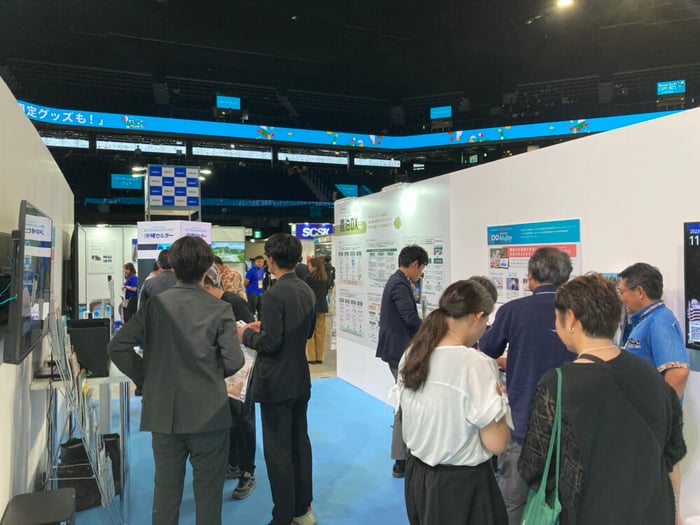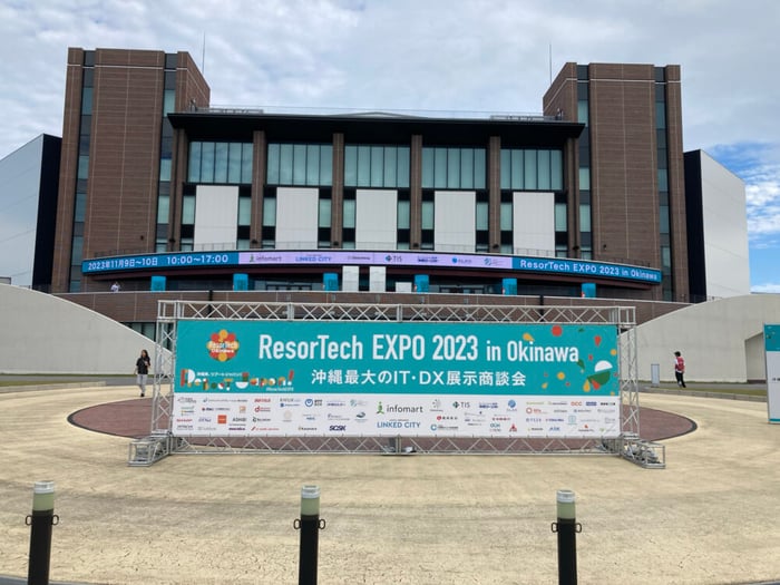 2023年11月9~10日にFIBA(バスケットボール)ワールドカップの会場となった沖縄アリーナで県下最大のIT•DX展示商談会ResorTech EXPO in Okinawaが開催され、当社はダイヤモンドスポンサーであるLINKDE CITYのブースに共同出展しました。