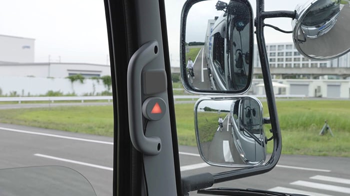 左ミラー部分に取り付けたカメラからの映像をモニターに映し出します。ミラーでは見えづらい範囲もしっかり確認できます。