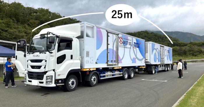 全長が25メートル、一度に2台分の荷物を輸送できることから、2024年問題の解決策の一つとして注目を集めています。
