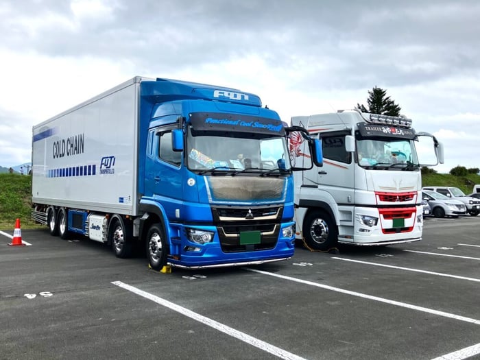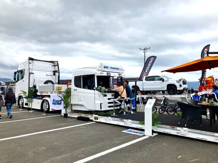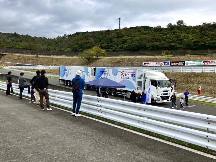 新型トラックの試乗会や80台以上の大型トラックやトレーラーによるパレードランが行われていました。