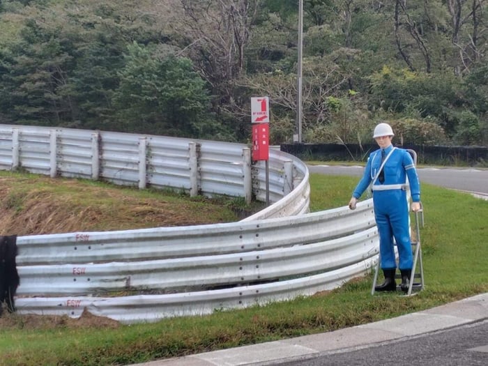 コースの途中、左折する箇所に人が立っているのが見えます・・・!